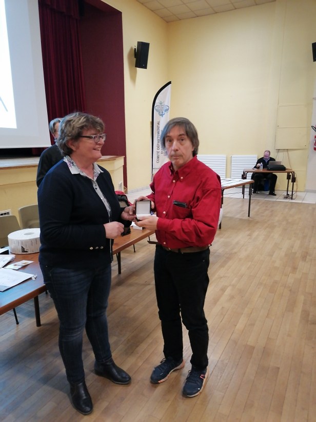 2 médaillés récompensés Nadine GENDRE (SMAC) médaille d’argent de la FFA et Bernard GUENIN (JTA) médaille de bronze.