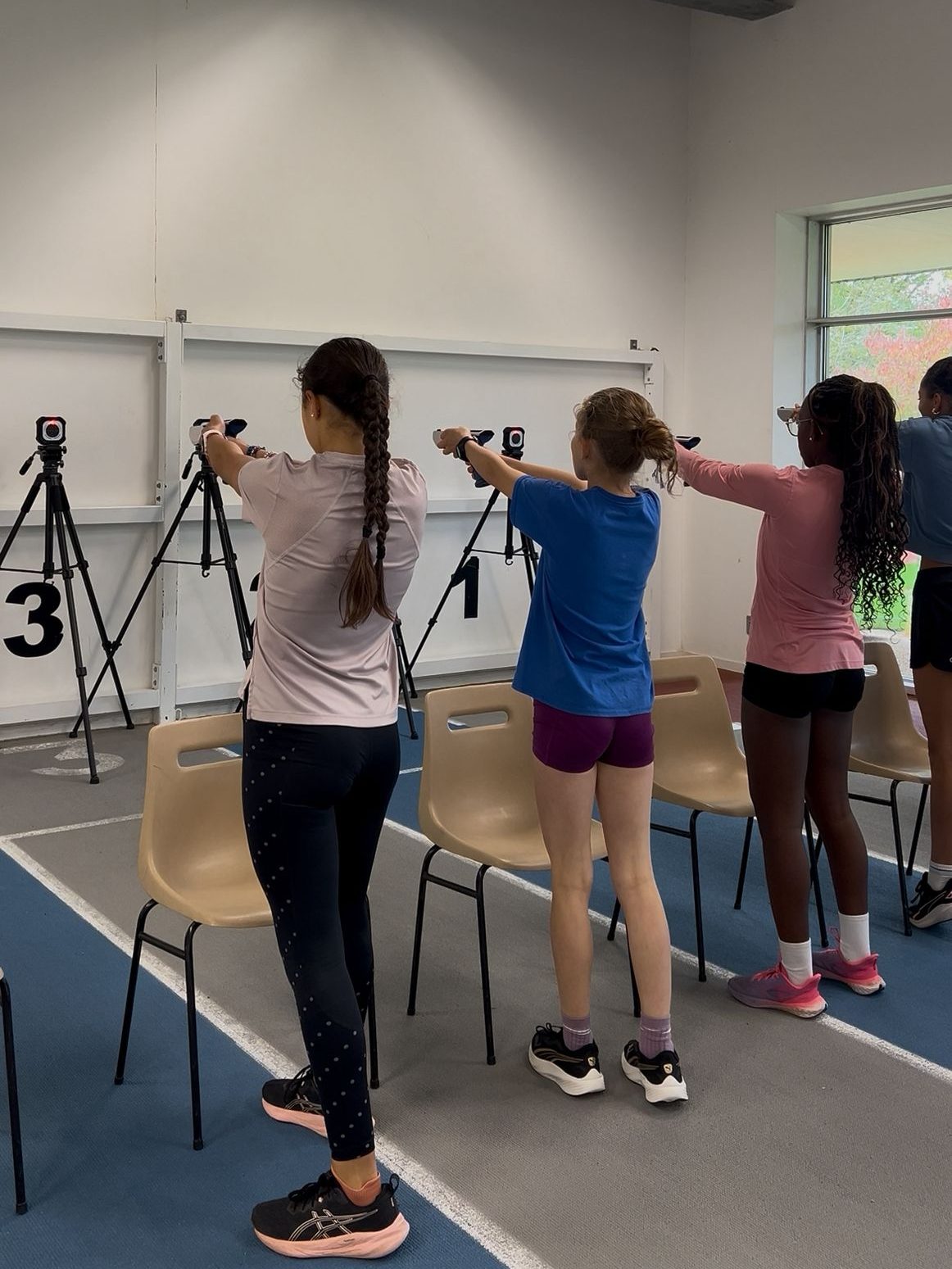 Ensuite, ils ont participé à plusieurs épreuves de biathlon en équipe avec des pistolets laser, une belle manière de travailler la concentration et la gestion de l’effort tout en s’amusant.